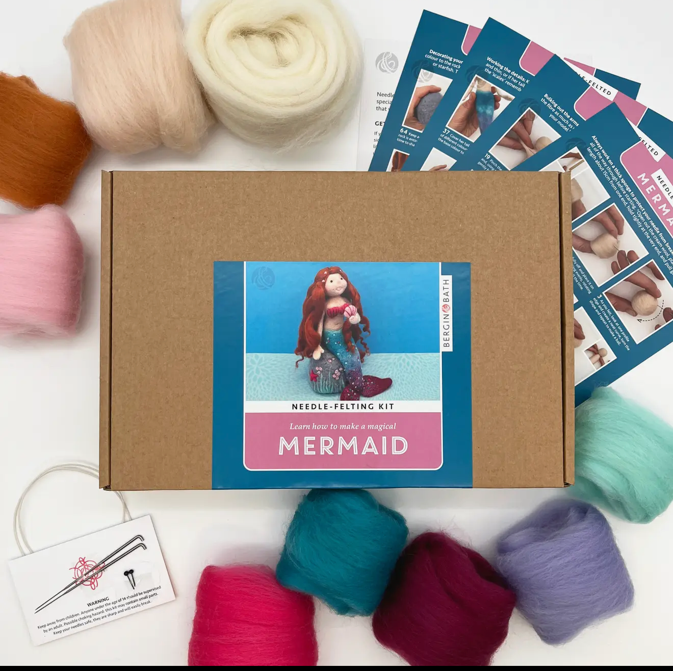 The Bergin + Bath Mermaid Needle Felting Kit will have you discovering the art of needle felting, while you learn to make a beautiful mermaid.